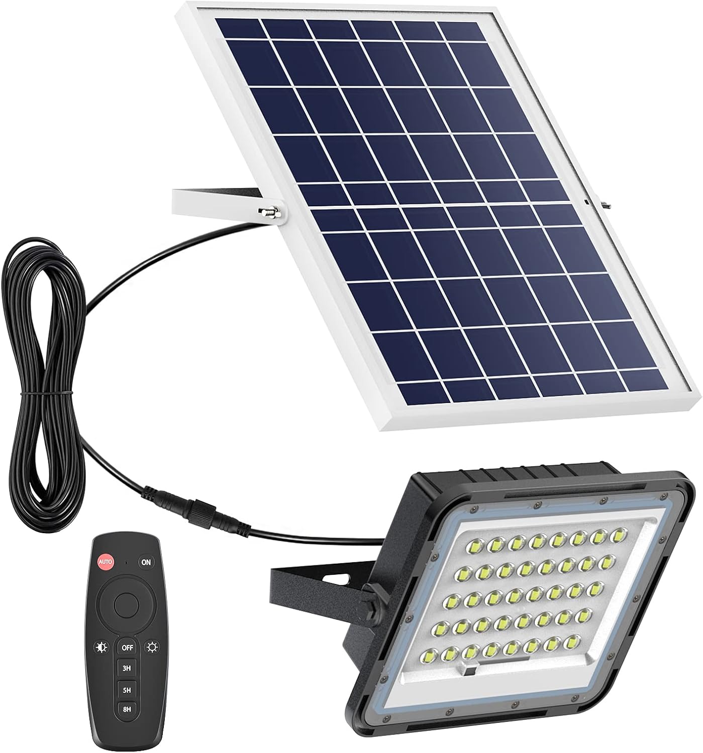 - ✅Continuously illumination from dusk to dawn: The solar panel has a built-in photoelectric sensor, which will automatically turn on at dusk and automatically turn off at dawn. 16.4ft connecting cable can meet your installation and use needs to the greatest extent( you can mount the lamp at dark place and the solar panel in another place to get direct sunshine ). The recommended installation height is 16.4-19.7ft.